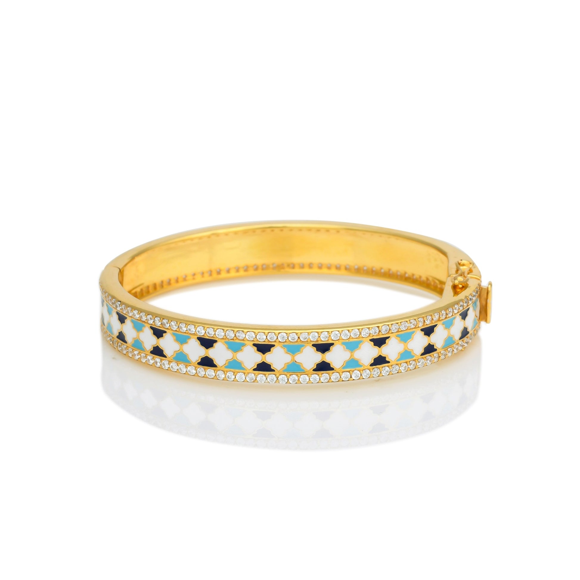 The vibrant color palette embedded in Spanish architecture is brought to life through enamel in each design. These pieces can be stacked together or worn on their own, with blending patterns that complete each other.